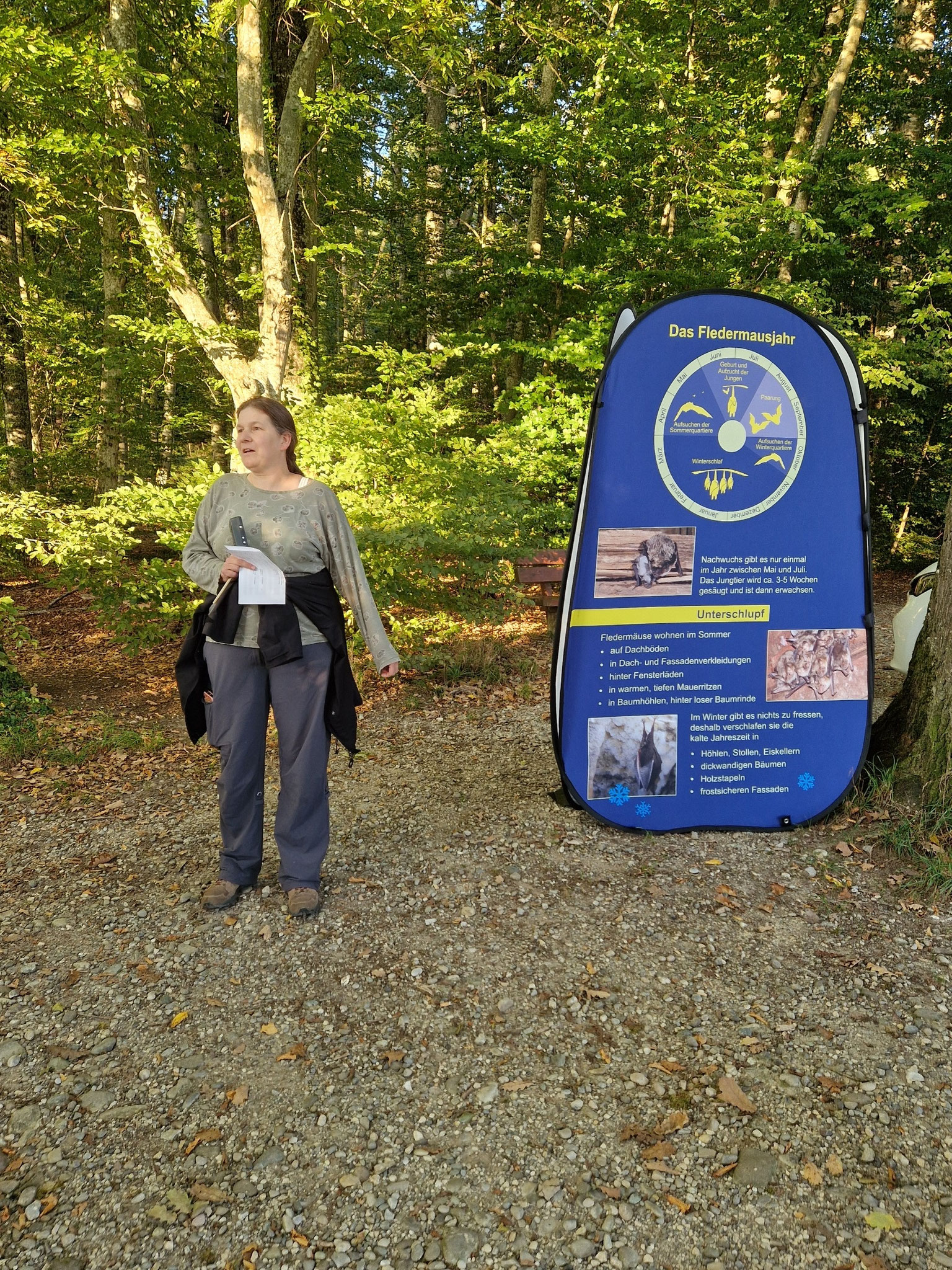 Alexandra Sproll führte uns in die Welt der Fledermäuse ein. Dazu hatte sie einen Tisch mit Anschauungsmaterial (Prospekte) gerichtet